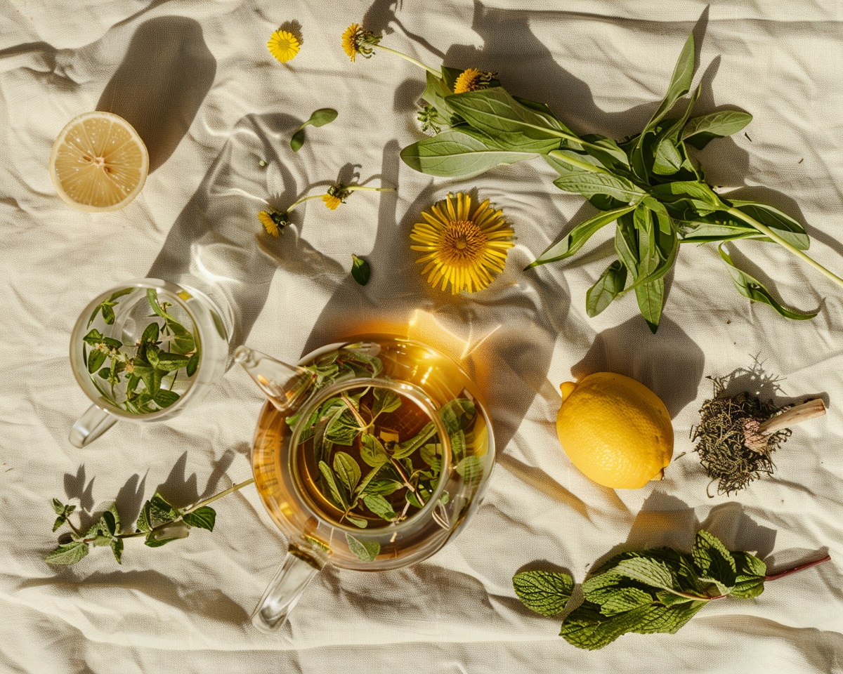 Stinging nettle will support detoxing the blood and liver, and cleaver will stimulate the body's immunity and healthy liver functioning. While dead yellow nettle supports the body's defence system, dandelion leaf maintains a healthy detox of the digestive system. The beautiful orange flowers of calendula tie it all together, helping to detoxify the liver, aide the lymphatic system and reduce inflammation in the digestive system.